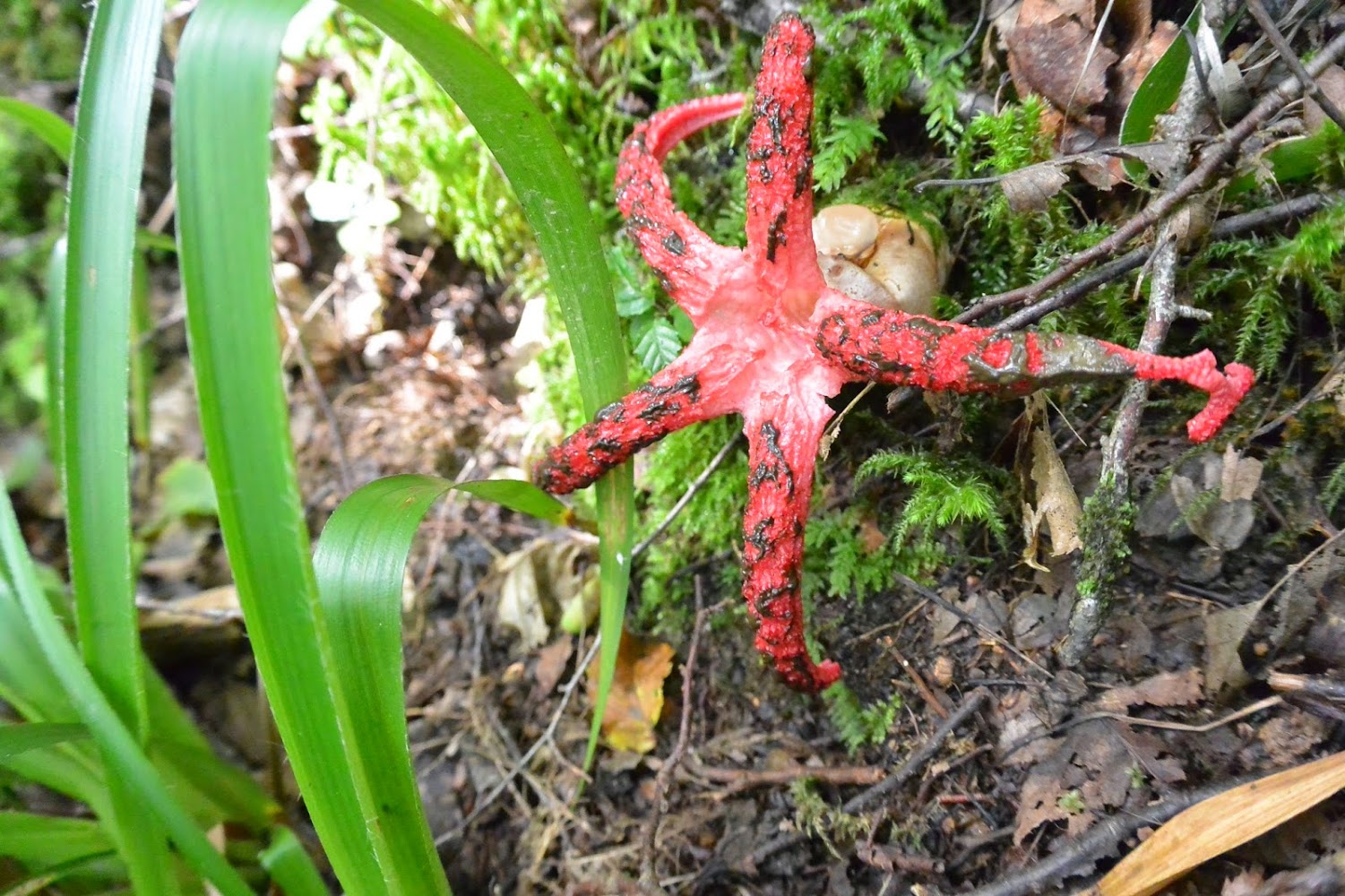 Le champignon ressemblant à une pieuvre est un Anthurus archeri aussi appelé Clathre d’Archer, Anthurus d’Australie, Etoile des bois, Pieuvre des bois. Il n’est pas comestible.