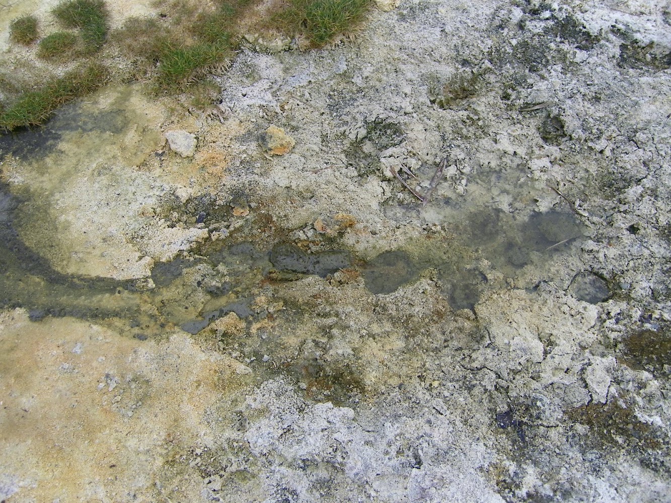 Les panneaux ne sont pas de trop pour nous éclairer sur les caractéristiques des sources. Ainsi on apprend que l’eau, riche en fer et en carbonates de calcium et magnésium expliquent la couleur ocre du sol ainsi que les étranges plaques blanches de travertin.